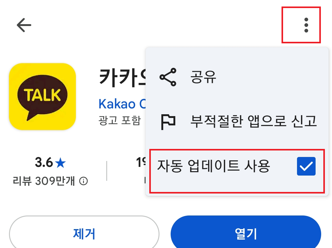 - 이제 카카오톡만 자동 업데이트가 되지 않습니다.