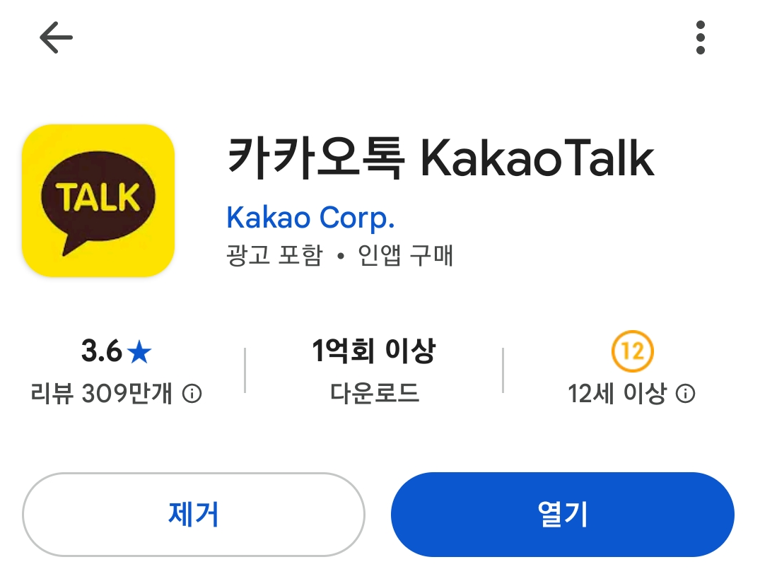 - 카카오톡 앱 상세 페이지로 들어갑니다. (앱 열기 버튼 옆 이름 부분을 터치)